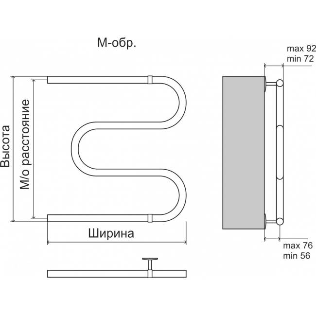 - Межосевое расстояние полотенцесушителя, мм: 600