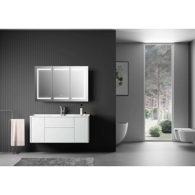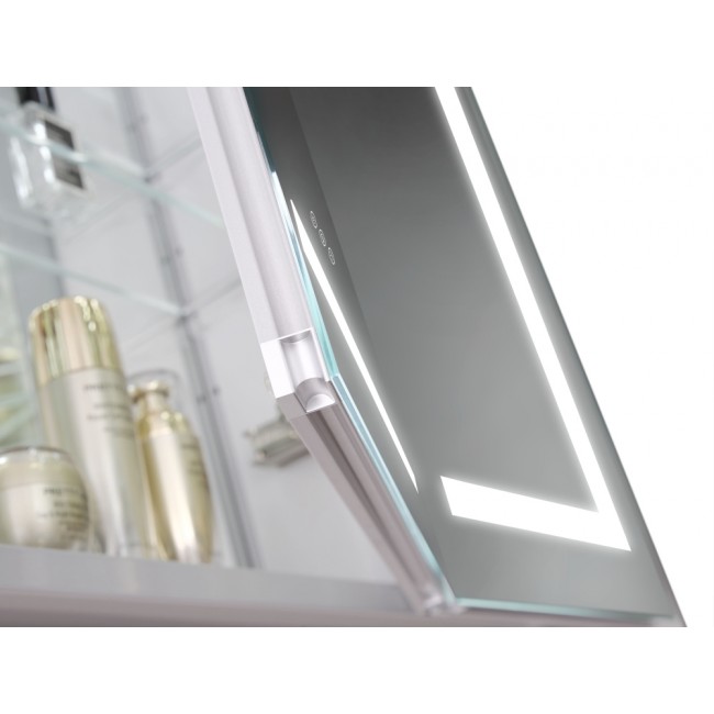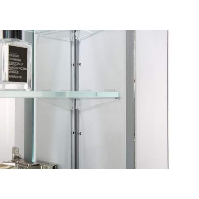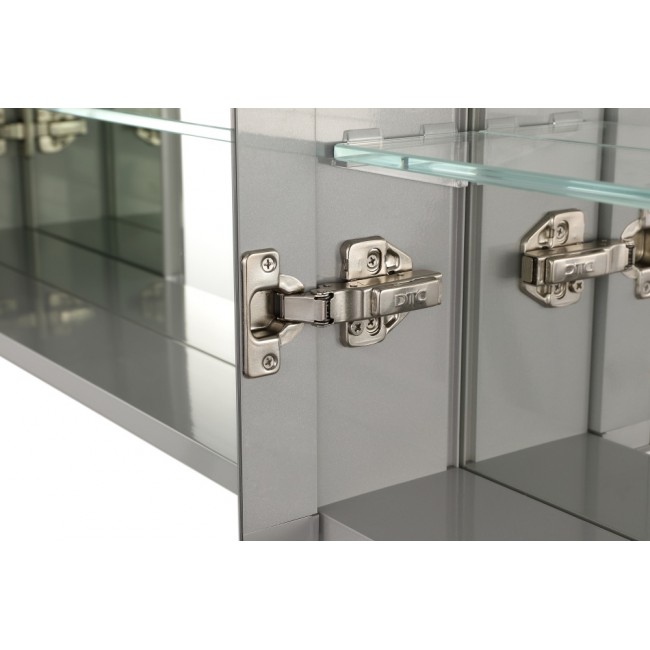Зеркальный шкаф оснащен практичными полочками, которые позволяют организовать хранение различных предметов — от косметики до банных принадлежностей. Пространство внутри шкафа можно легко настроить под свои нужды, благодаря регулируемым полкам.