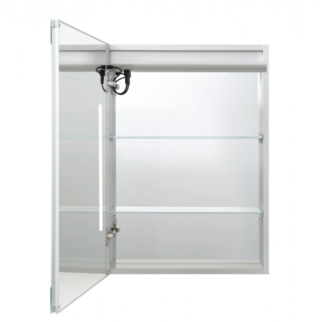 Зеркальный шкаф оснащен практичными полочками, которые позволяют организовать хранение различных предметов — от косметики до банных принадлежностей. Пространство внутри шкафа можно легко настроить под свои нужды, благодаря регулируемым полкам.