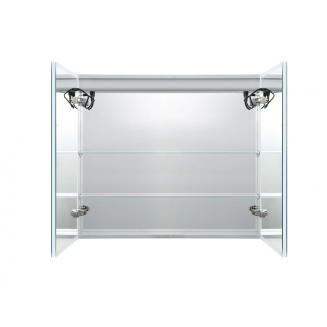 Петли BLUM с доводчиком и углом открывания на 95 градусов обеспечивают плавное и бесшумное открытие дверей, что делает использование шкафа комфортным на протяжении всего срока эксплуатации. Зеркальный шкаф для ванной выполнен из влагостойких и прочных материалов, что гарантирует его долговечность и устойчивость к воздействию влаги в ванной комнате.