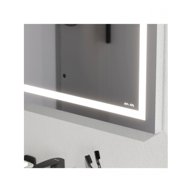 Обновление функционала и расширение размерной линейки зеркал AM.PM. Прямоугольное зеркало с яркой LED-подсветкой и бесконтактным сенсором в размере 60 см. Ультрамодный лаконичный дизайн зеркал Gem от собственной студии дизайна AM.PM Design подойдет к интерьеру любой ванной комнаты.