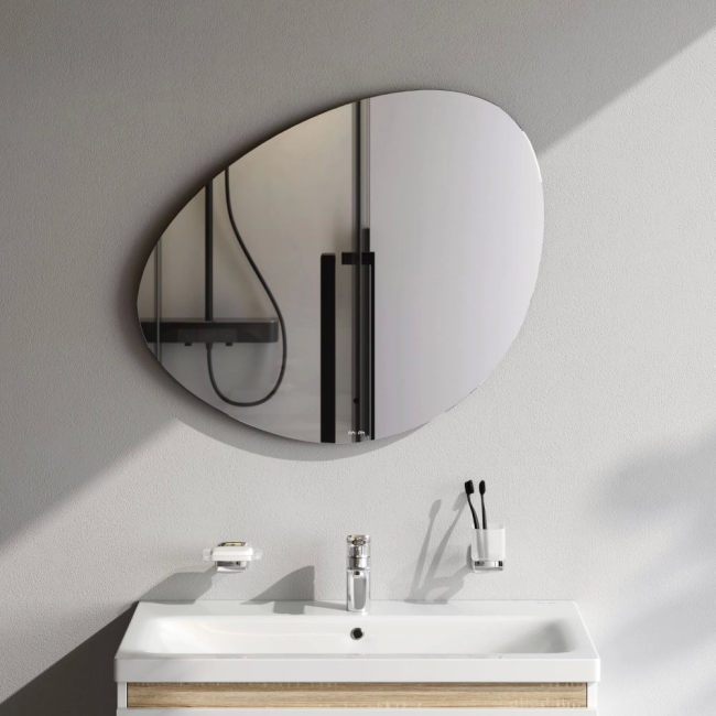 Край зеркального полотна обработан еврокромкой что обеспечивает надежную защиту от случайных порезов при контакте с изделием.